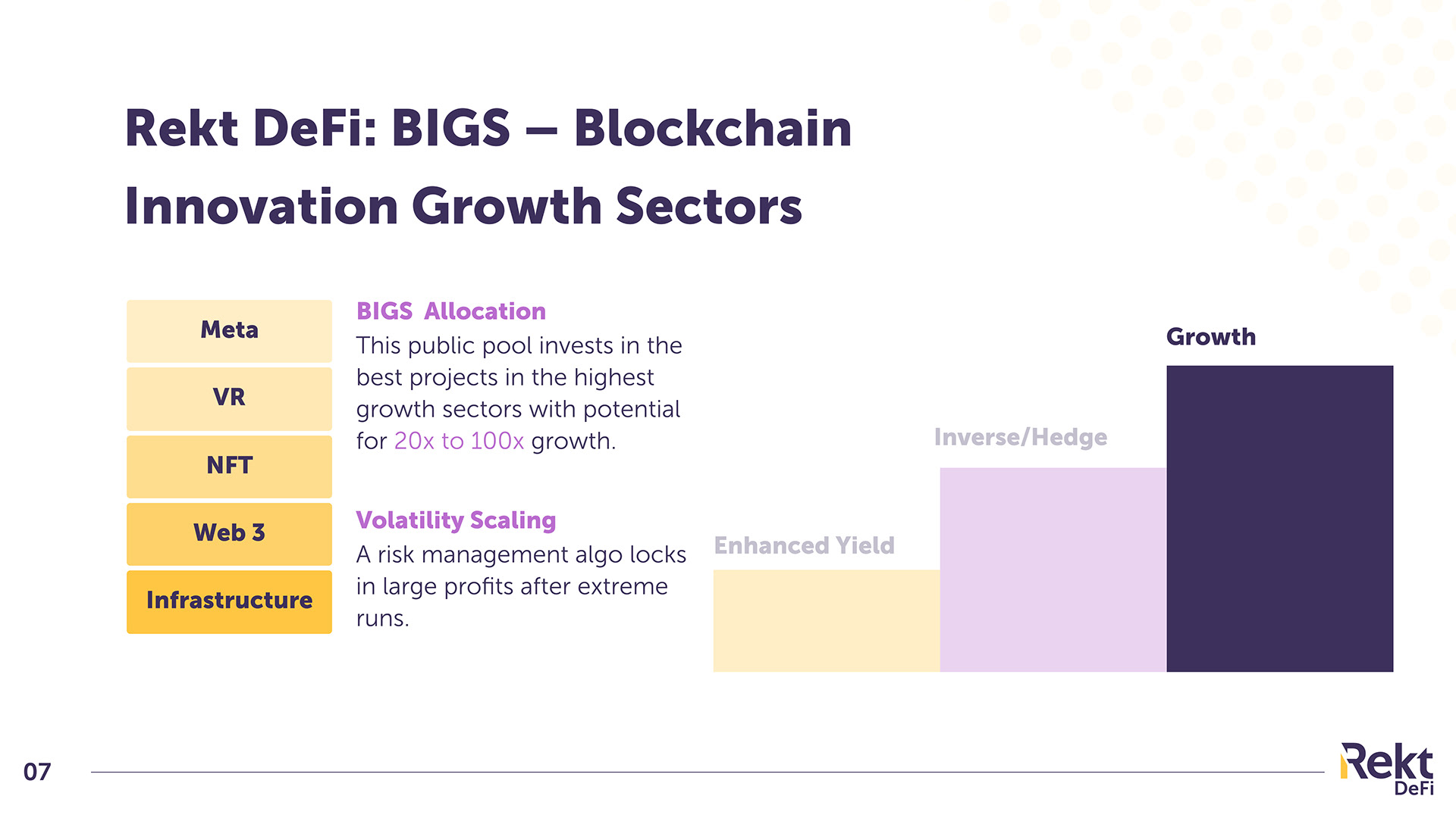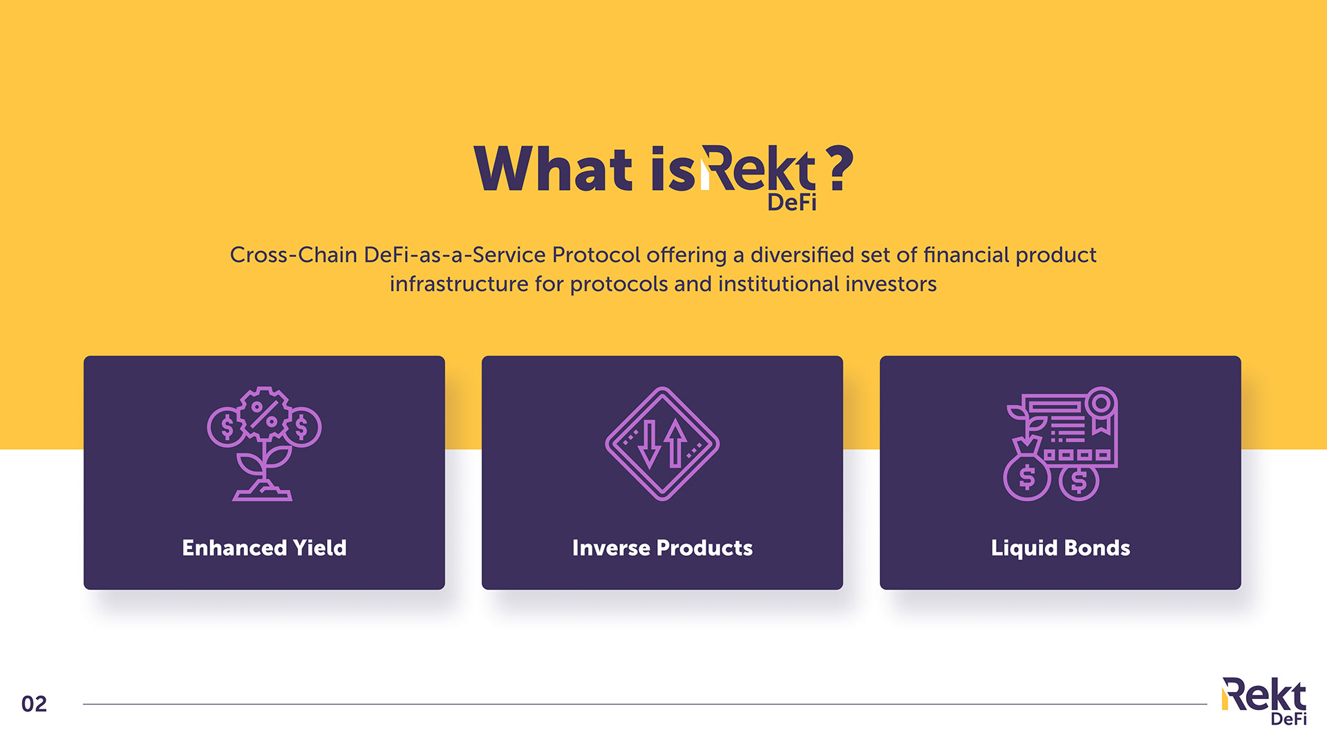 We developed a comprehensive set of marketing materials, including pitch decks, whitepapers, and social media graphics. The materials adhered to RektFi's brand guidelines, showcasing their commitment to transparency and decentralization.