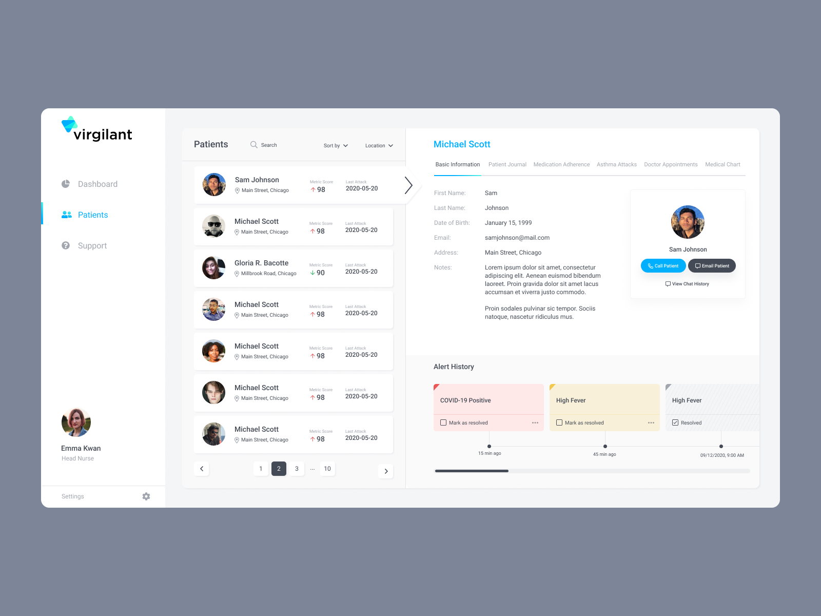I designed a clear and responsive dashboard displaying real-time vitals like oxygen levels, respiratory rate, and trends over time.